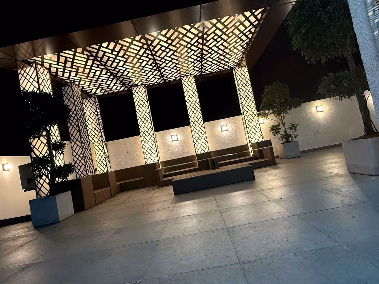 The project highlights precision detailing and modern façade aesthetics using advanced CNC technology.
